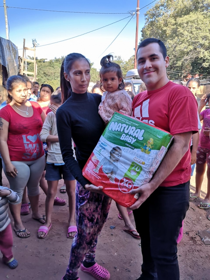 Representantes del Consejo de Delegados de la Universidad Columbia del Paraguay, sede España, y el Departamento de Gestión y Reducción de Riesgos, realizaron la entrega de kit de aseo personal y del hogar, así como pañales para niños y adultos, al Refugio Artigas, el día jueves 20 de junio.