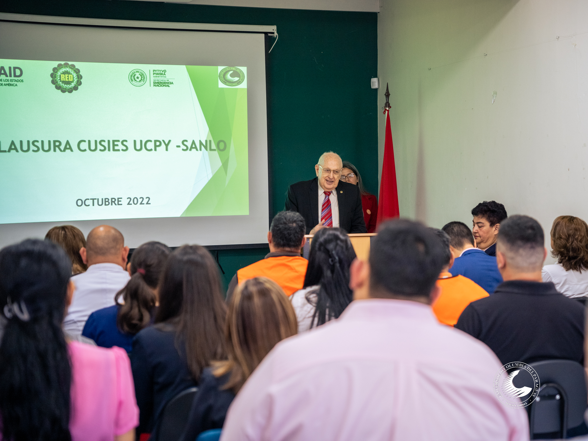 En el acto de clausura se contó con la presencia de representantes de la Secretaría de Emergencia Nacional, de la USAID/BHA en Paraguay, el Vicerrector Académico Ma. Rubén Urbieta y el rector de la universidad Dr. Roberto Elías Canese.